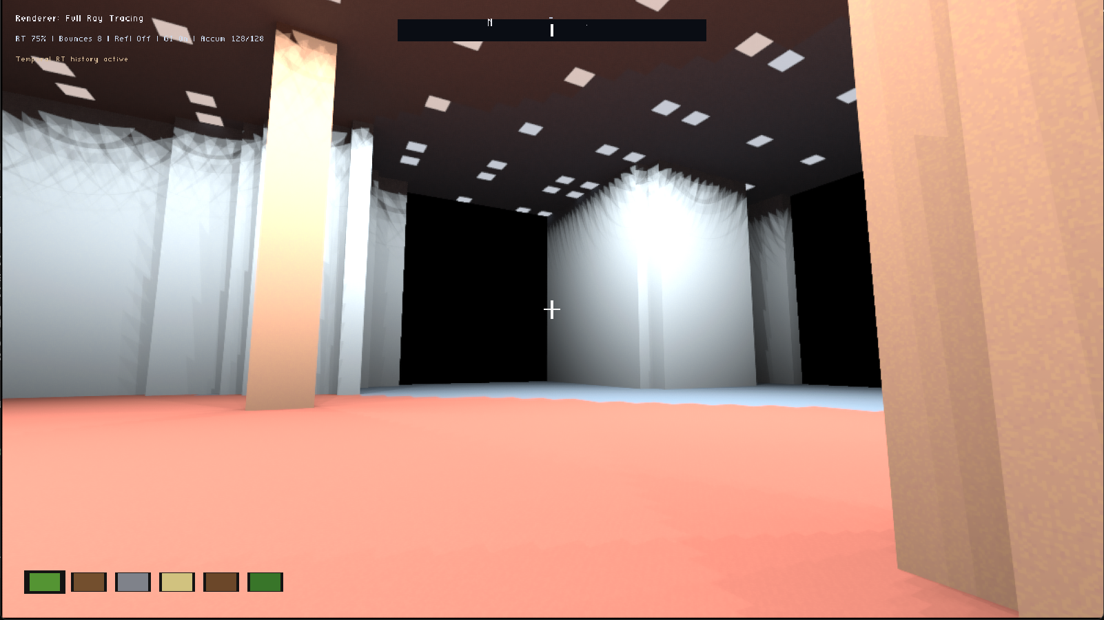 - Ray Trace reflections are not set up! Procedurally generated voxels don't have full normals yet (working on t) or reflectivity flags, so, EVERYTHING is a mirror! Use reflection setting with caution!